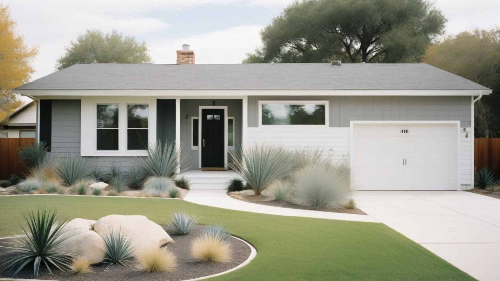 - Planted with drought-tolerant plants, such as yucca and ornamental grasses.